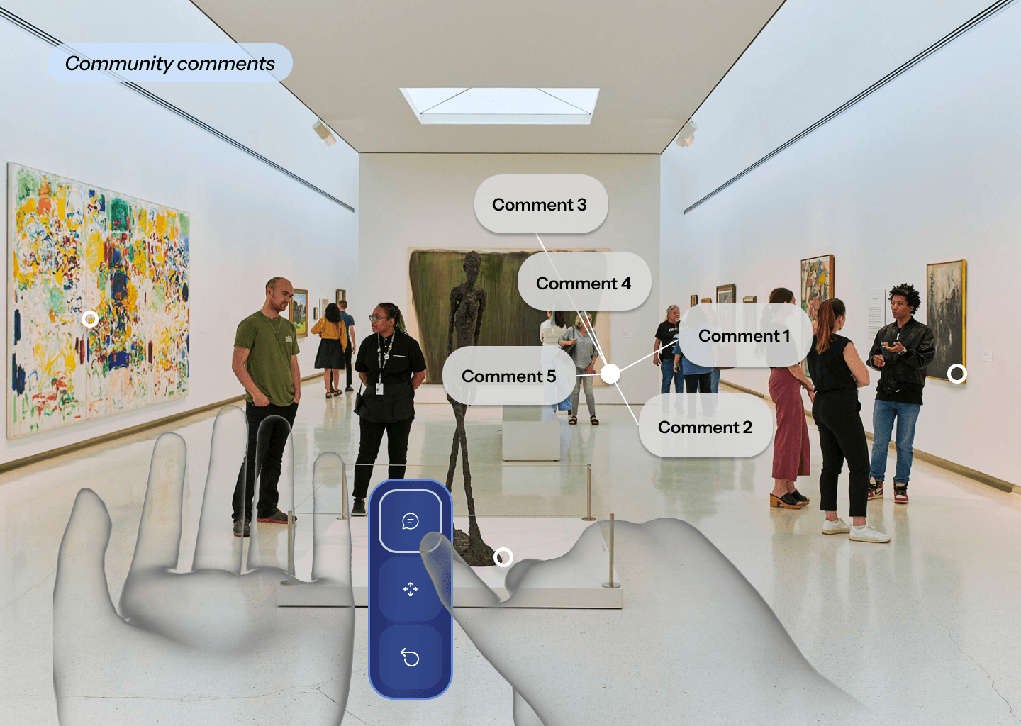 As this was my first time prototyping for MR, I went through many iterations of what the experience of leaving comments and interacting with artworks could look like.
